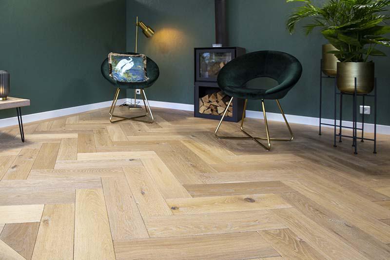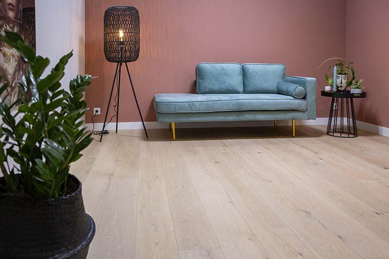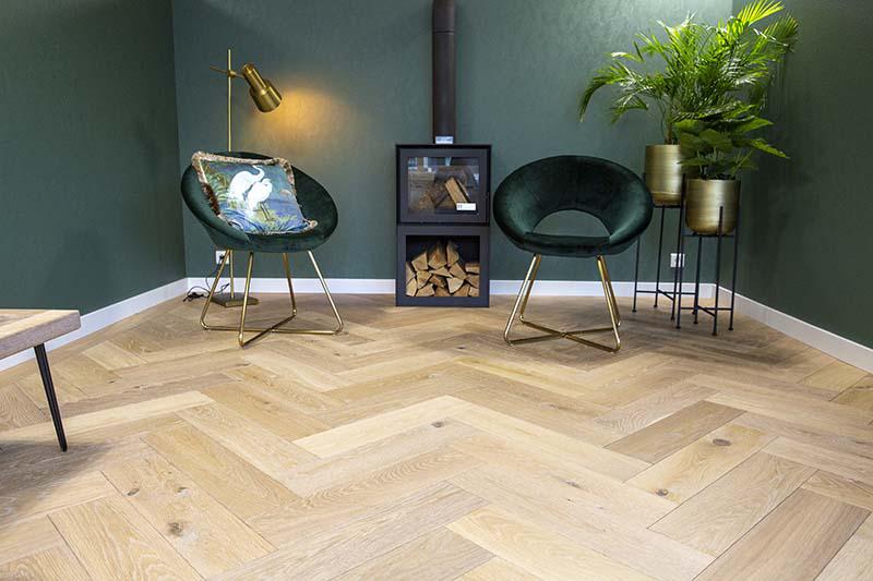 In de showroom zijn ook verschillende stijlkamers gerealiseerd, door de vloer te kunnen bekijken in een stijlkamer is het eenvoudiger te zien, hoe een bepaalde vloer matcht met een bepaalde interieur stijl. We hebben de stijlkamers onlangs helemaal opnieuw ingericht volgens de laatste interieur trends en laten deze graag aan u zien. Kijk bijvoorbeeld eens hoe mooi een eiken vloer in visgraat patroon matcht met de botanische interieur trend, een plaatje toch?